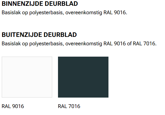 Optioneel kan de deur in vrijwel iedere RAL-kleur uitgevoerd worden.
